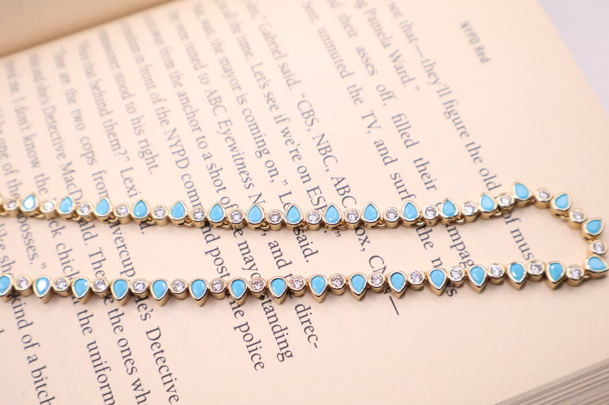 Turquoise & Gold-Plated Teardrop Tennis Necklace